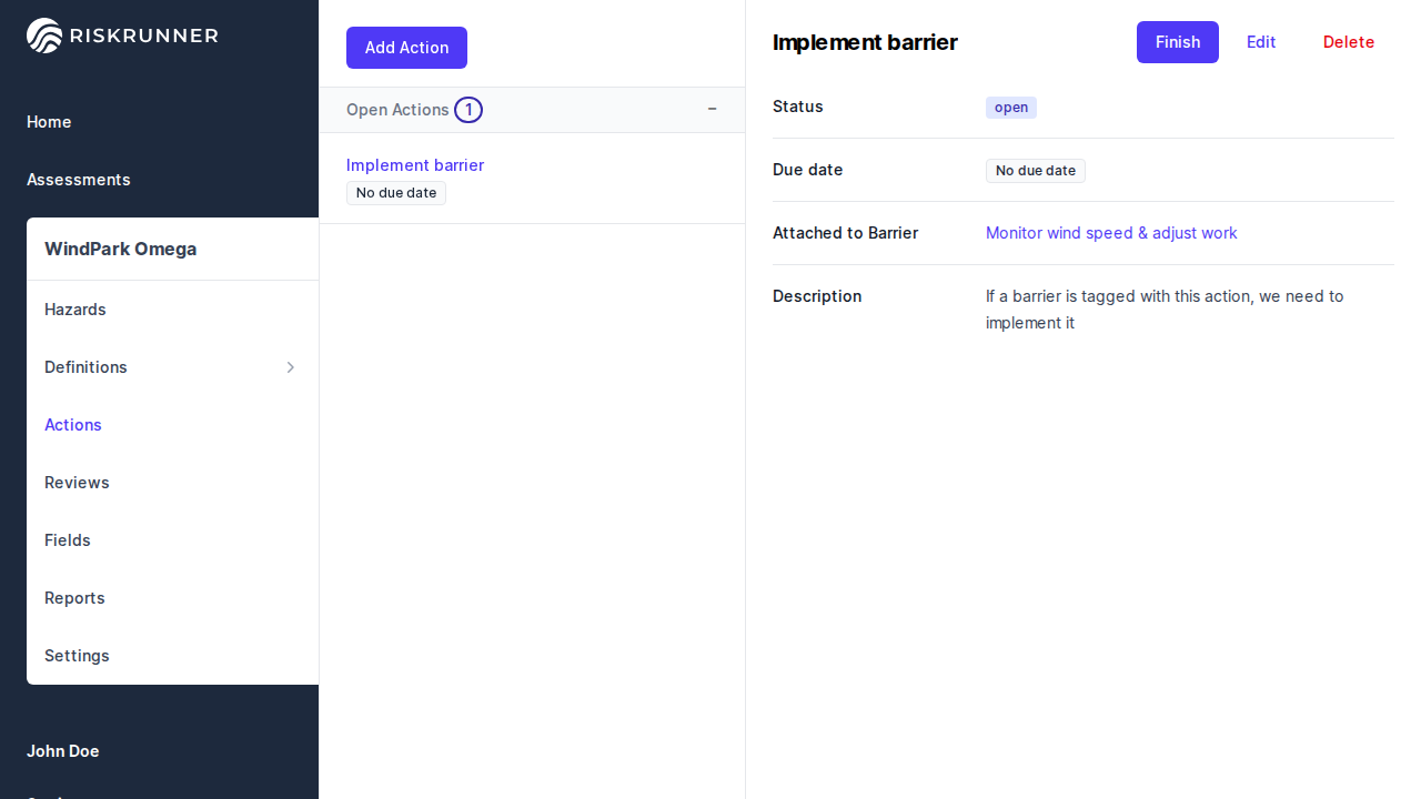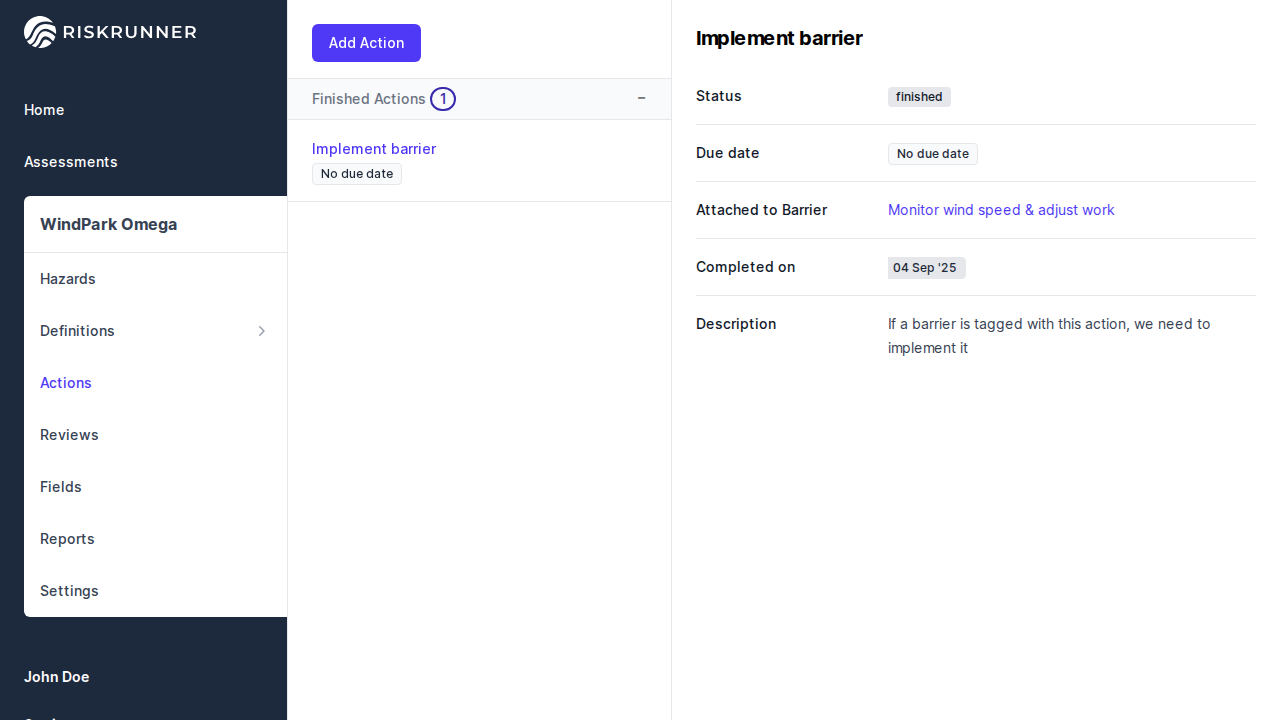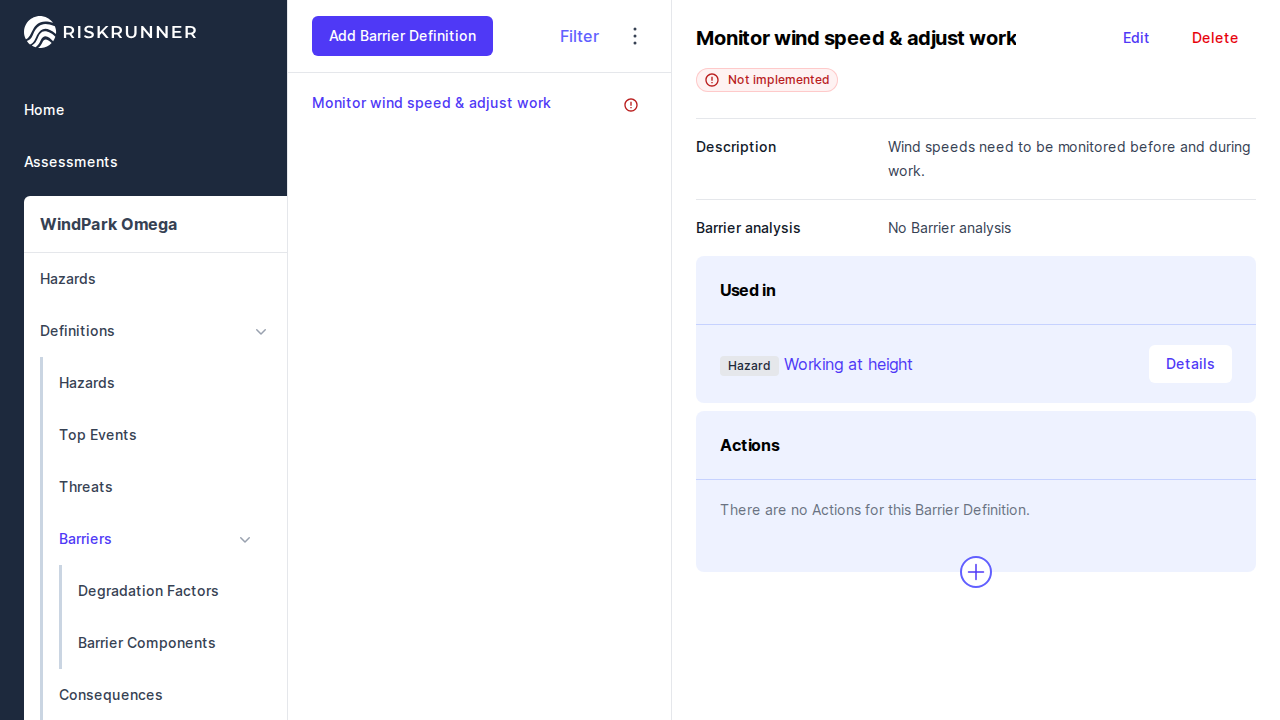 You can add actions onto your barriers definitions by going to the “Actions” tab in an assessment.