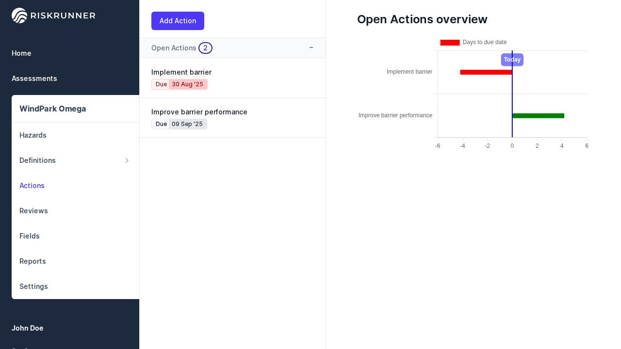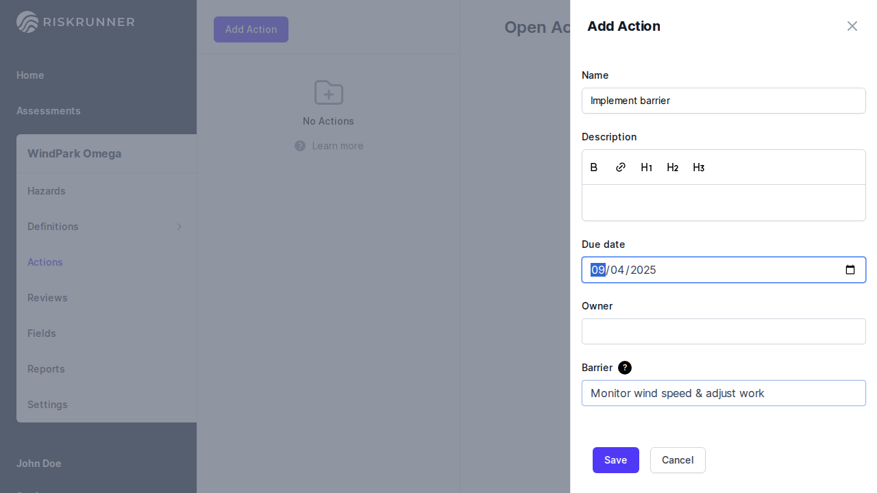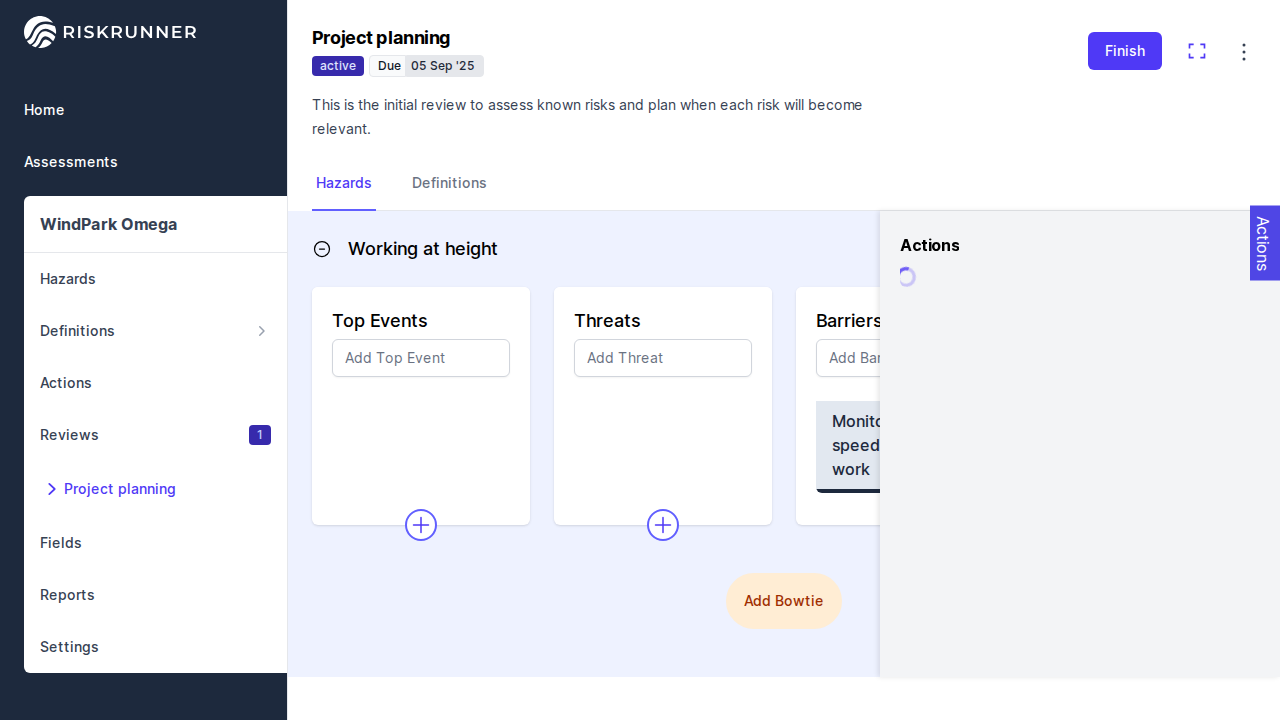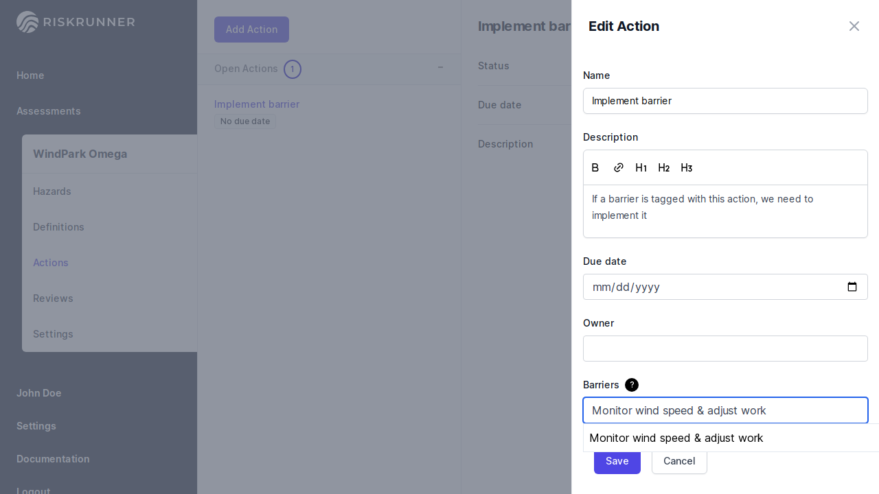 You can add actions onto your barriers definitions by going to the “Actions” tab in an assessment.