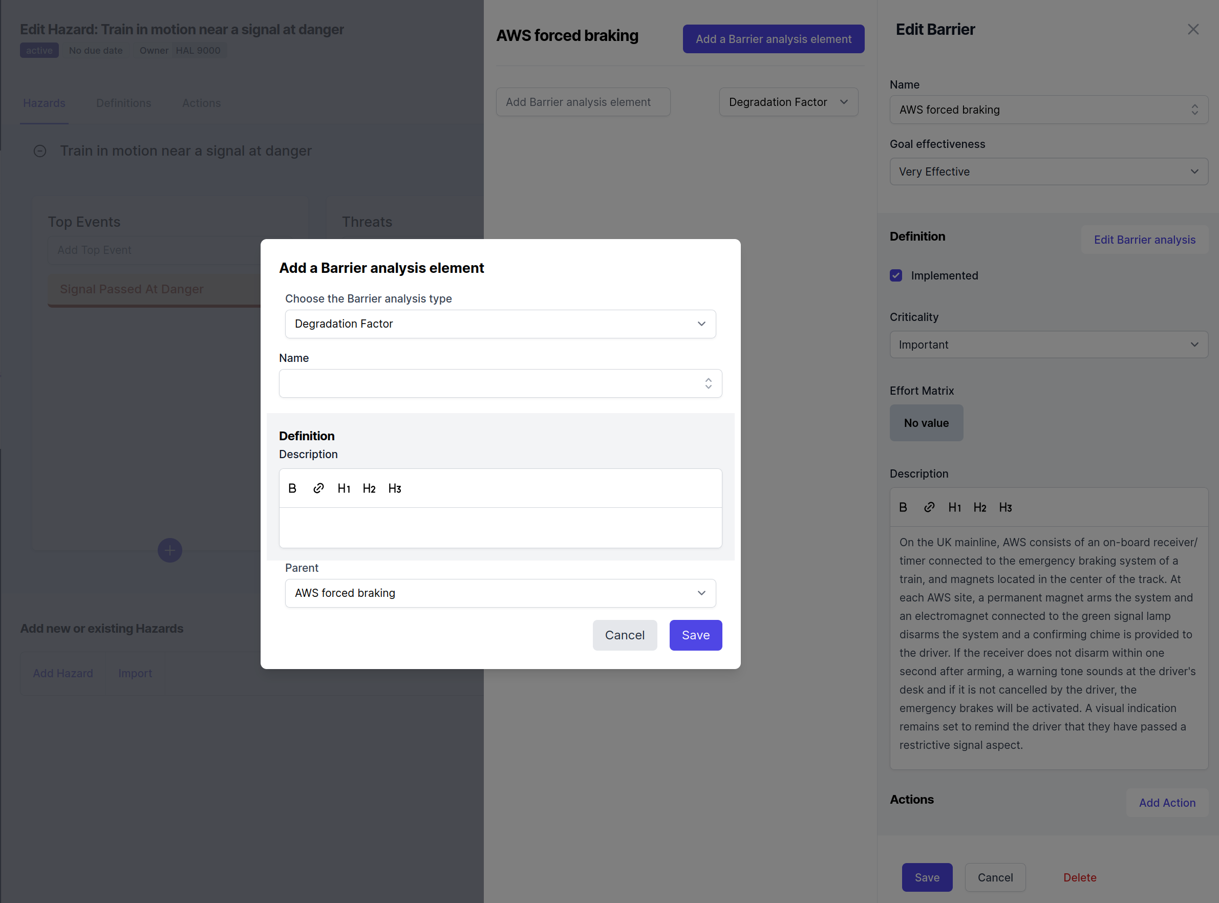 Barrier analysis elements are tied to a specific barrier definition. This ensures that you can find, utilize, and modify the analysis across all hazards where the particular barrier definition is applied.