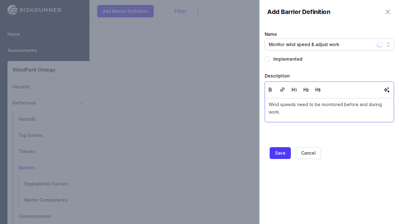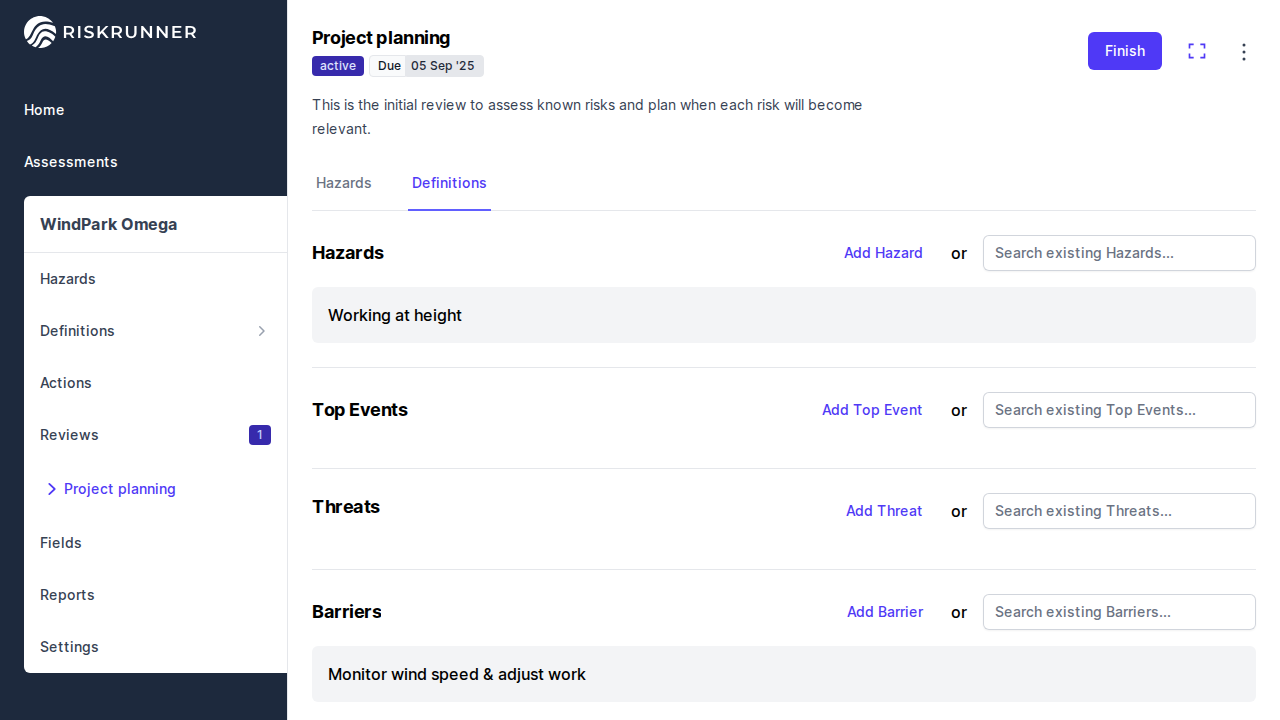In riskrunner, you have access to definitions. The concept here is to create a general terminology you can reuse. When you create an instance, it is linked to a definition. This definition is unique inside an assessment.