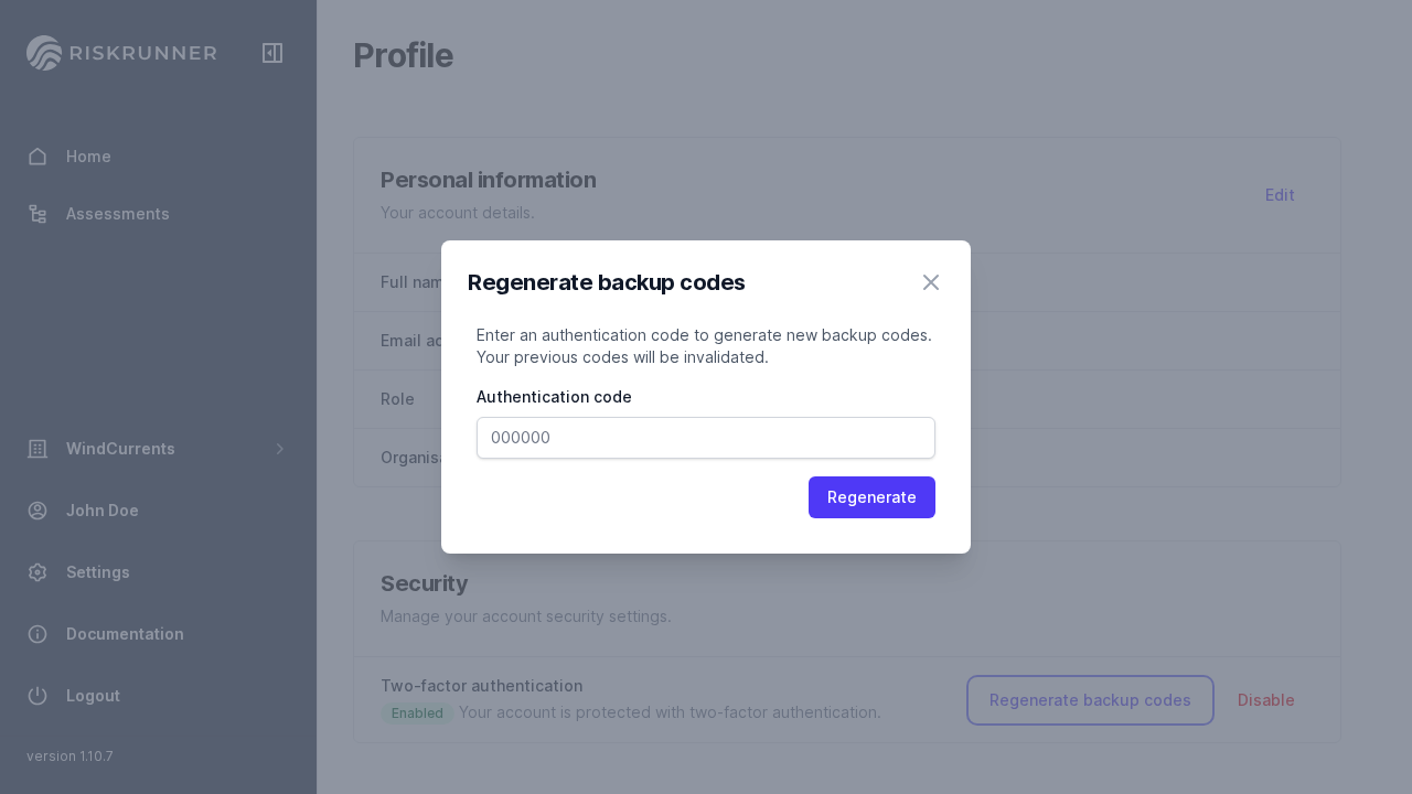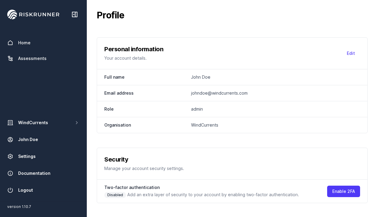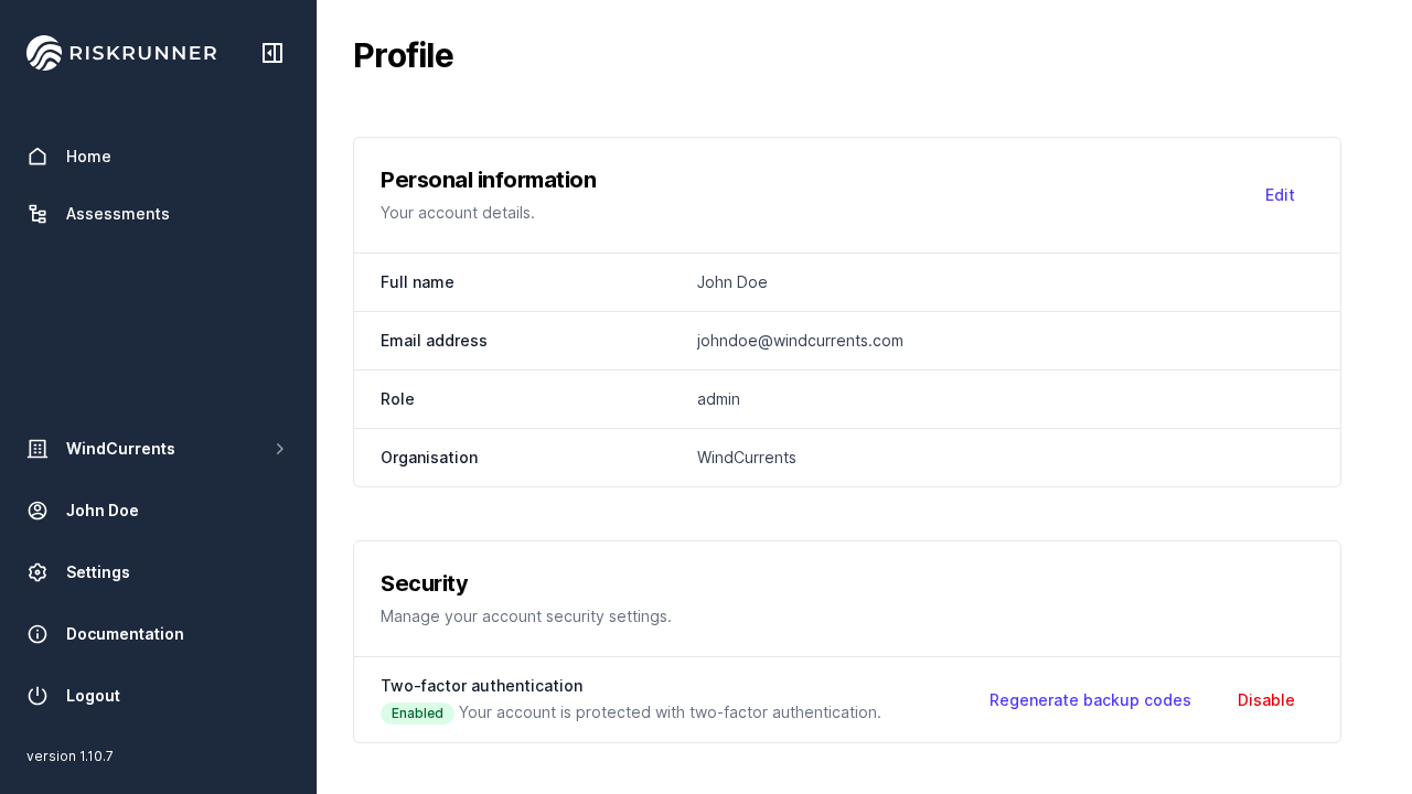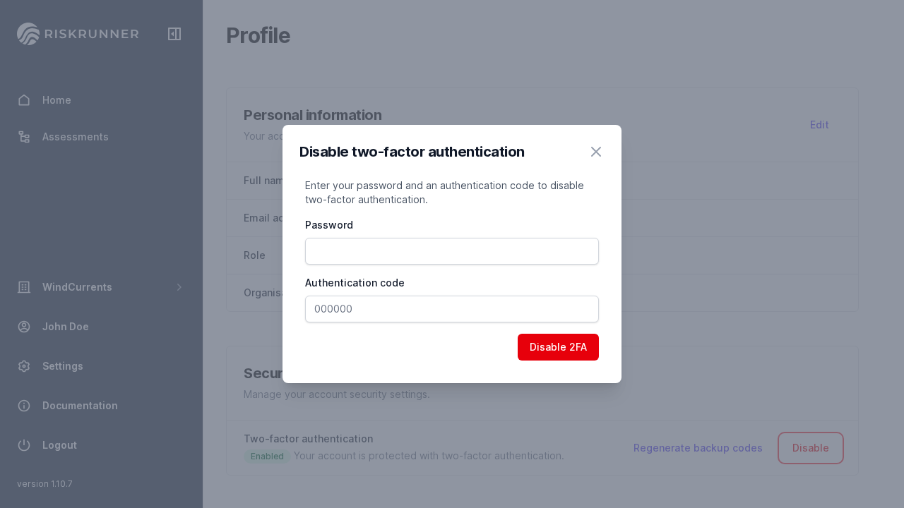 Riskrunner supports time-based one-time password (TOTP) two-factor authentication for password-based accounts.