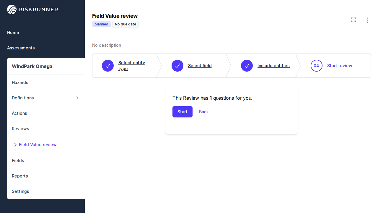 You will see a summary of the review and the field it will impact. You can now start the review.